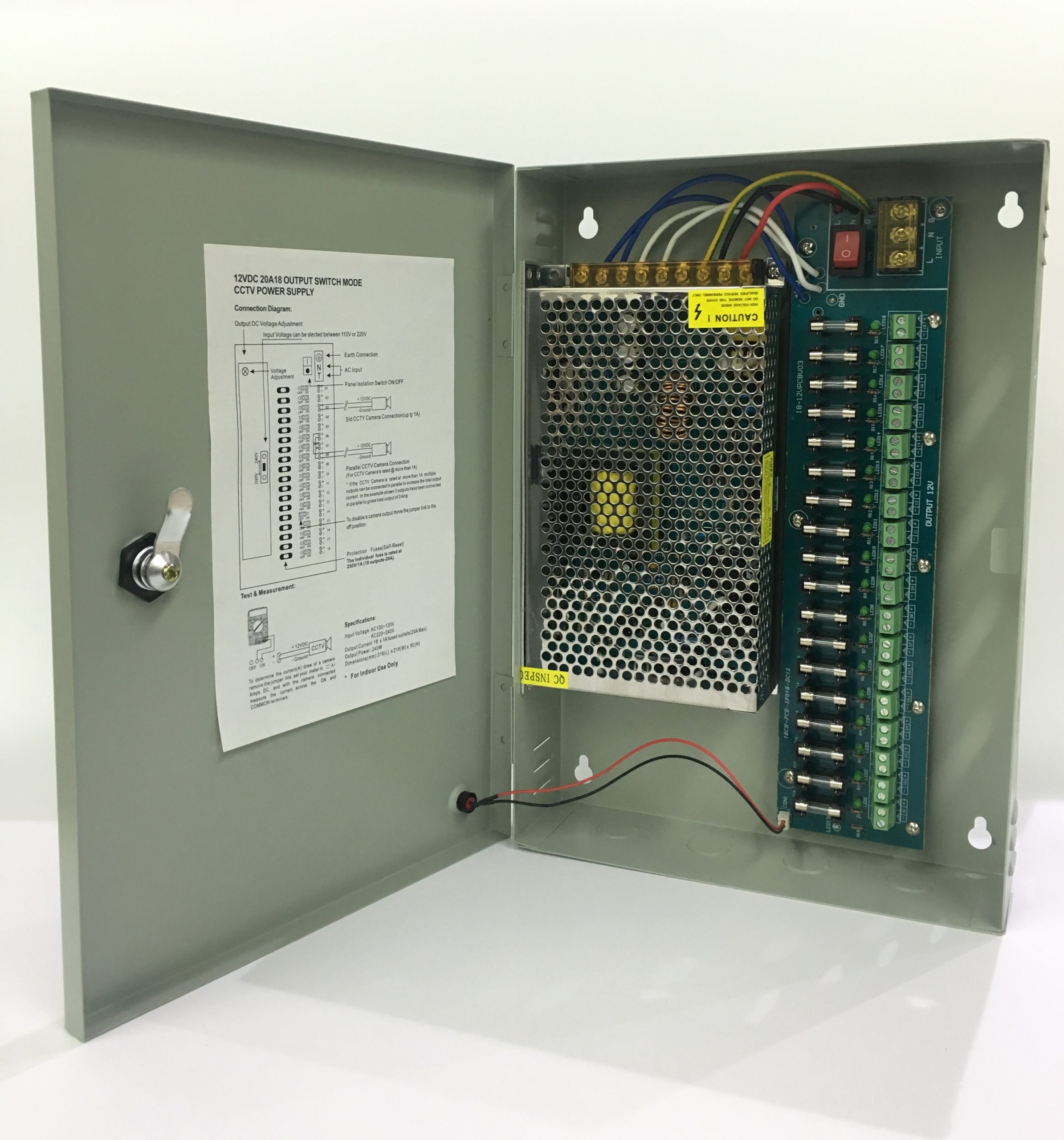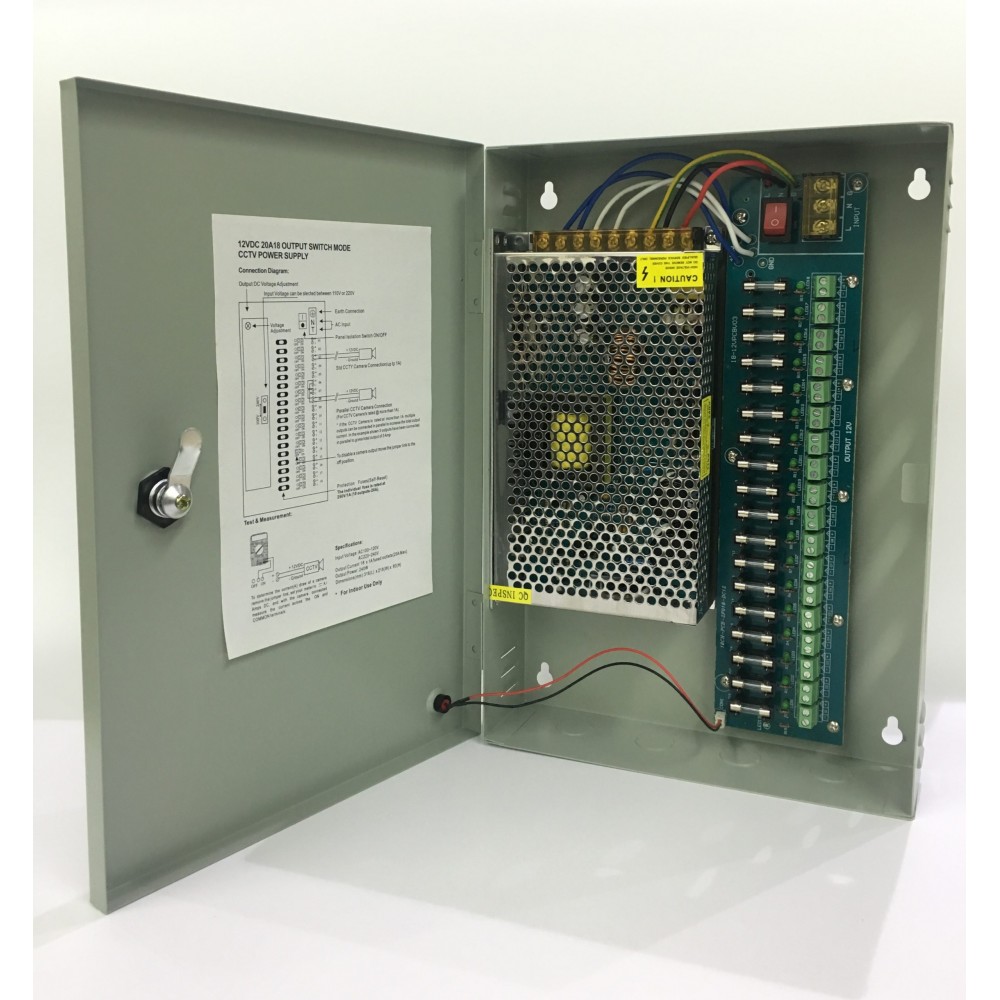 AMR-1218C-20A Τροφοδοτικό 220Vac / 12Vdc / 20A / 18 κανάλια × 1A με ασφάλεια