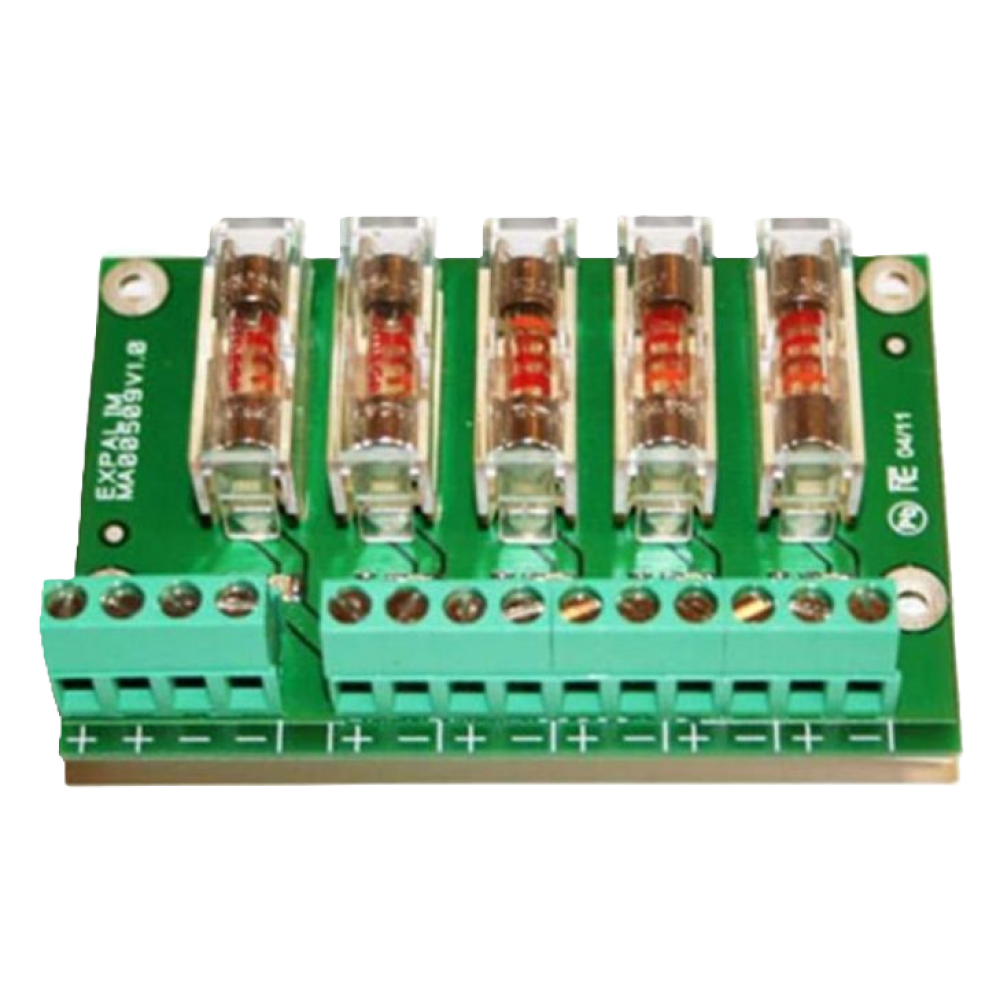 Πλακέτα 2 DC είσοδοι και 5 έξοδοι προστατευόμενες με ασφάλεια.